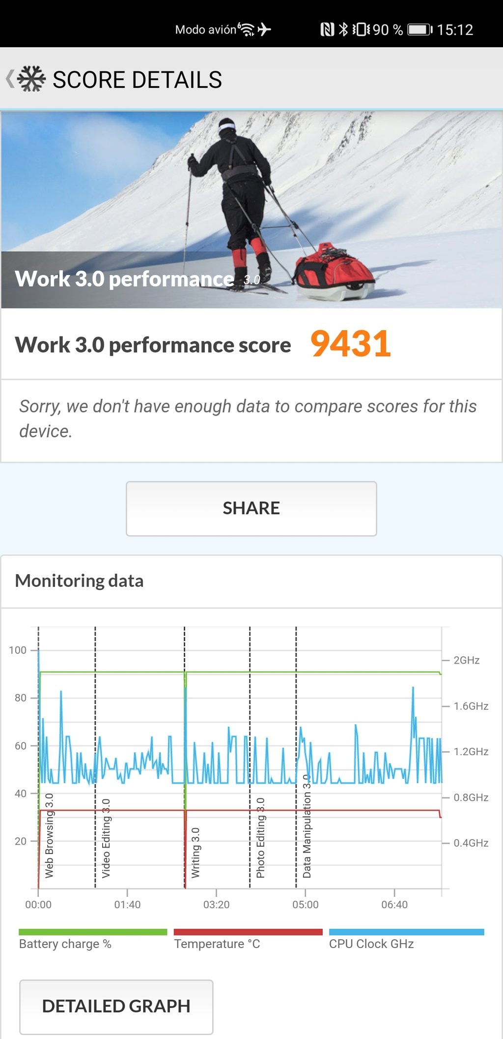 Pasamos a ver el corazón del Huawei Mate 40 Pro, el Kirin 9000 que, como bien sabéis, fue el primer chip de 5 nanómetros implementando un procesador de 8 núcleos acompañado de una GPU Mali G78 una NPU de doble núcleo y conetividad 5G llegándonos con un total de 8 Gb de RAM. Sabemos que, sobre el papel, encontramos terminales con un mayor despliegue a nivel RAM pero, la verdad, el Huawei Mate 40 Pro continúa siendo una auténtica delicia a nivel rendimiento moviendo con total soltura cualquier tipo de app sin importar lo pesada que sea o lo ardua que sea nuestra multitarea. En lo referente a conectividad encontramos 5G, WiFi ac 2×2 MIMO, Bluetooth 5.2, GPS y USB-C 3.1 Y qué mejor manera de mostrar el rendimiento del terminal móvil que con la batería de tests sintéticos a la que solemos someter a todos los dispositivos móviles que pasan por nuestra sección.
