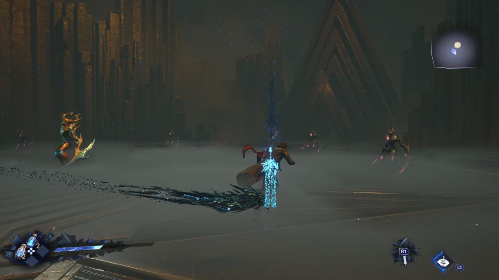 En lo jugable, la primera impresión es positiva. El sistema de combate es fluido, dinámico y bebe claramente de influencias como Devil May Cry o Final Fantasy XV. Cambiar de arma, esquivar y ejecutar combos espectaculares nos divierte durante las primeras horas. Sin embargo, esa chispa se extingue pronto. En apenas unas pocas horas, el combate comienza a sentirse sumamente repetitivo, como si estuviéramos ejecutando una y otra vez la misma secuencia sin variaciones significativas.