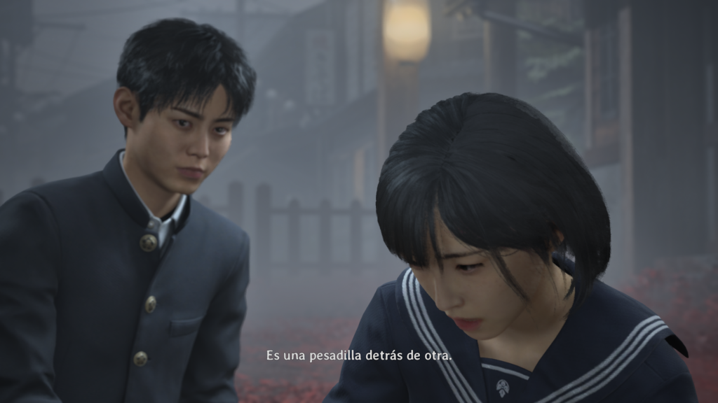 El trabajo de ambientación merece una mención propia: Ebisugaoka no es una traslación literal de Silent Hill, sino una reinterpretación estética y cultural. Calles empedradas, letreros en kanji, tiendas cerradas y la arquitectura japonesa de posguerra se yuxtaponen con símbolos universales del mal, espacios vacíos que parecen respirar, ecos que devuelven voces distorsionadas, para crear una versión «local» del miedo. Esta localización aporta capas temáticas: las tensiones familiares, el peso de la reputación social y la cicatriz histórica de un Japón que mira hacia un pasado que no termina de cerrarse.