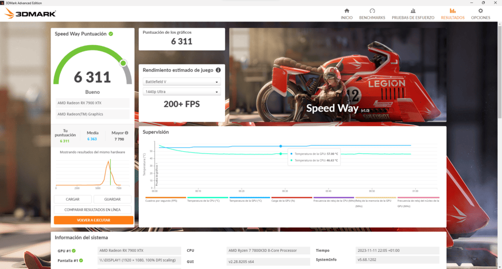 En cuanto a su uso para gaming y utilizando esta última configuración en BIOS, este pequeño disipador consigue mantener temperaturas más que correctas sin perder rendimiento por el camino tanto en 3DMark Speed Way como en Spider-Man y el benchmark de Horizon Zero Down.