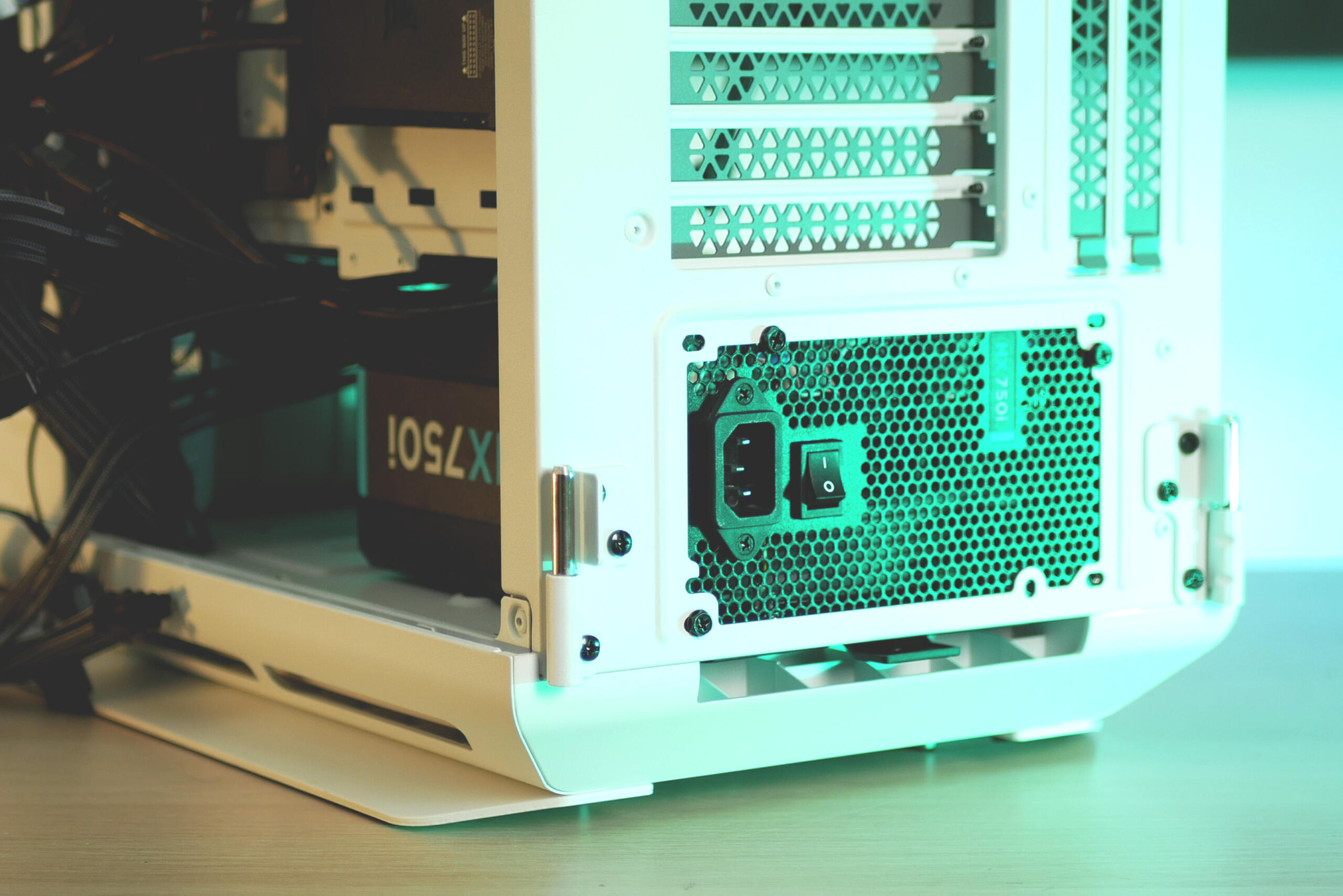 Si pasamos al panel superior encontramos un panel mesh retirable y, bajo éste, soporte para la instalación de hasta 3 ventiladores de 120mm o 2 de 140mm y sus respectivos radiadores. Además, queremos destacar que todas las aristas (inferiores, superiores y frontales) cuentan con una discreta y preciosa banda de retroiluminación LED que pasa totalmente desapercibida estando apagada y luce espectacular cuando está encendida. En lo referente al panel de puertos, encontramos 4 USB 3.0, 1 USB 3.1 Type-C, conectores de audio y botones de power y reset. Por último, en la trasera del chasis encontramos un total de 9 ranuras PCIe (7 + 2 Vertical) y espacio para instalar un ventilador de 120 mm.